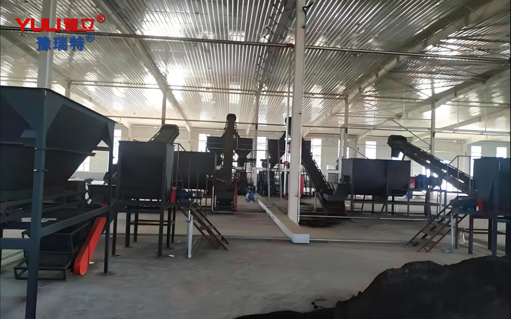 2. 制粒前備料系統(均勻保障):腐熟料經粉碎篩分后,暫存于鏟車料倉。通過雙軸攪拌機(WZSJ-80) 進行均質化處理,再由鏈式粉碎機(LP60型) 進行精細粉碎,確保物料細度(可達0.7mm),這是后續成粒率與顆粒光潔度的關鍵。